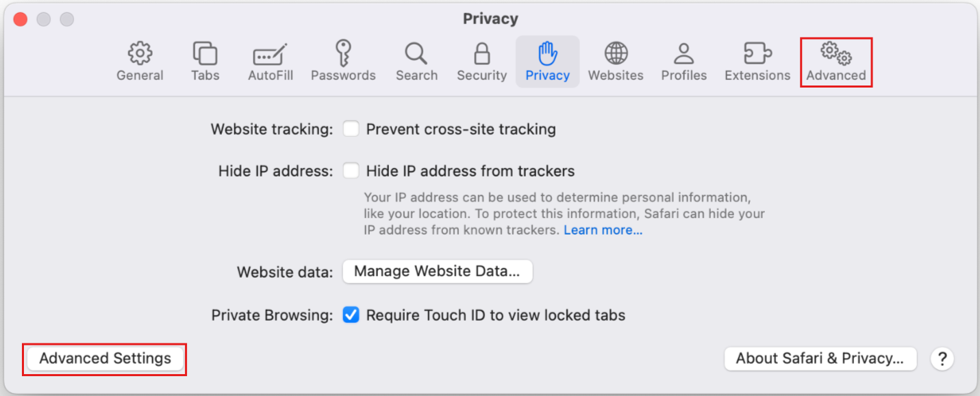 - Click the Advanced Settings button or the Advanced option in the top panel.
