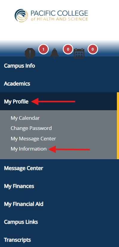In the left-hand menu, select My Profile. Additional options will appear beneath it—click on My Information to proceed.